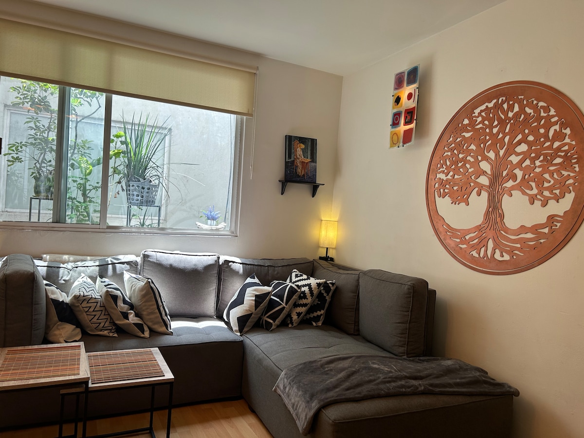 Espectacular Suite en el centro de la colonia condesa, ideal para 1 o 2 personas, con cama queen una cocineta completamente equipada, un gran baño completo privado y acceso al roof garden compartido A pasos de la icónica Nevería Roxy, la ubicación es inmejorable, encontrarás una sin fin de variedad de restaurantes, cafés, galerías y bares El departamento goza de una tranquilidad y silencio inigualable ideal para descansar trabajar y disfrutar Bienvenidos!
