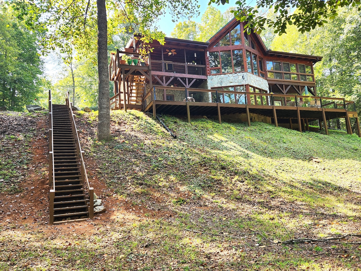 🌅 LAGO ADGER ABIERTO - ¡SIN RESTRICCIONES! Bienvenido a nuestra lujosa casa del lago recientemente renovada. Situado en su propio pedazo de paraíso en la comunidad de Lake Adger. Ubicada en el majestuoso esplendor de las montañas Blue Ridge, esta propiedad frente al lago se encuentra en un acre con su propio muelle privado y más de 150 pies de costa. • Bañera de hidromasaje • Cargador de vehículos eléctricos • Canoa, kayaks y tablas de paddle surf • Fogata • Muelle privado para paseos en barco, pesca y natación • Senderos de senderismo/equitación y bosques nacionales • Parrilla para barbacoa