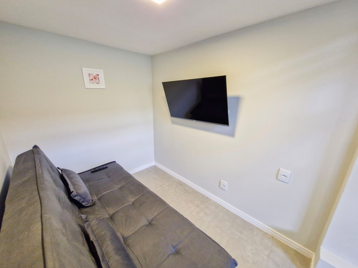 Apartamento muy bien ubicado en la zona céntrica de Indaiatuba, junto al centro comercial Jaraguá, tiendas, mercados, bares y restaurantes, con fácil y rápido acceso a la red de carreteras de la región y al aeropuerto de Viracopos. Amplio apartamento de 52 m², recientemente reformado, decorado y equipado, con dormitorio privado, ideal para estancias cortas o cortas, ya sea por placer o por trabajo.