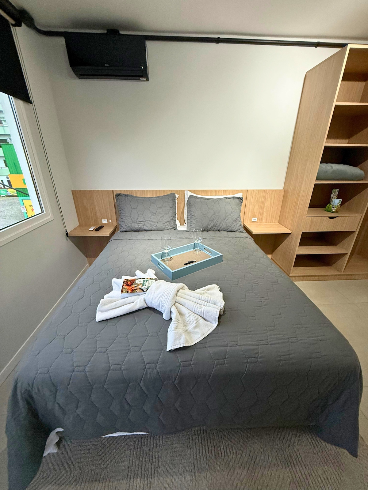 Disfrute del estilo moderno de este apartamento que contiene una decoración ligera y cálida. Camas súper cómodas para un merecido descanso después de un largo día de turismo en la ciudad más alemana de Brasil. Busque a pie esa cuca caliente por la mañana en las panaderías y confiterías más tradicionales de la ciudad. Y mientras visitas los principales puntos turísticos de Pomerode, tu coche se queda en el garaje. A 550 metros o 7 minutos a pie, del Zoológico, Vila Encantada y Centro histórico
