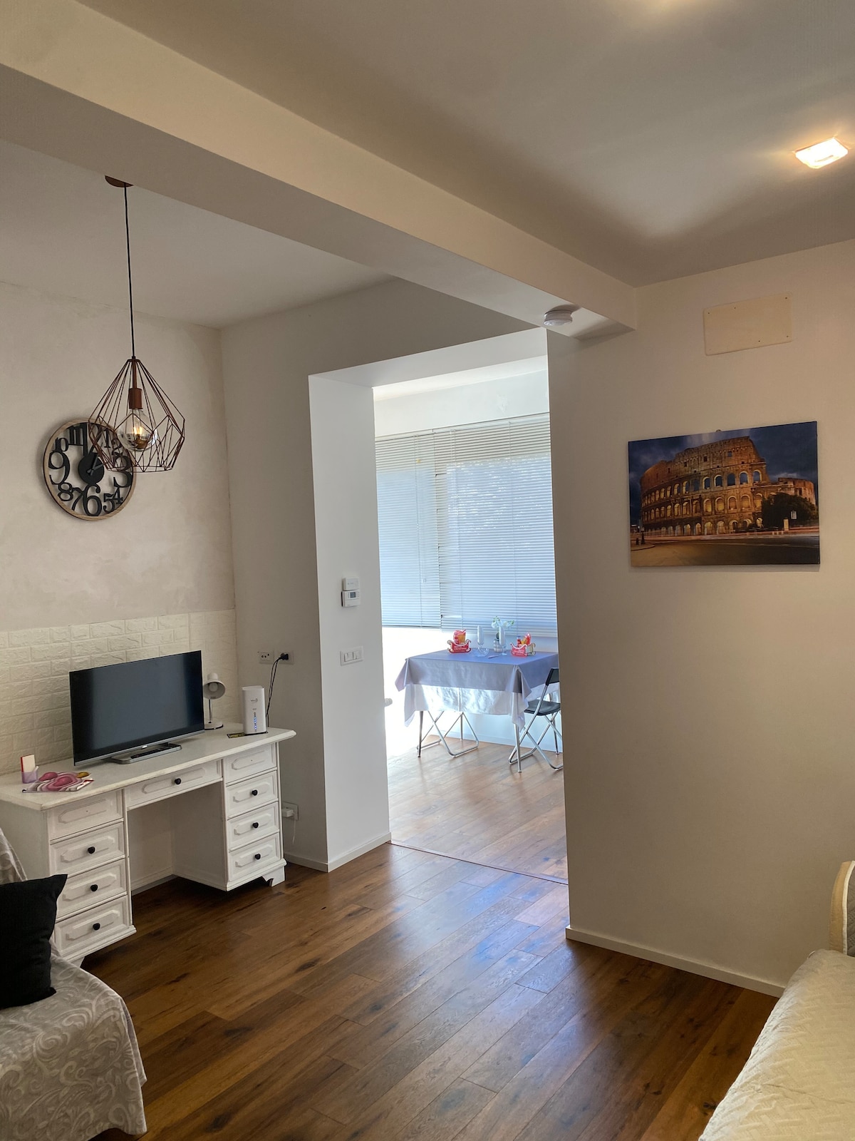 Precioso apartamento en Piazza San Giovanni, en el centro de Roma, es posible llegar en 10/15 minutos a lugares históricos y monumentos como el Coliseo, Fori Imperiali, Piazza Venezia. La casa está situada en el segundo piso de un edificio elegante y moderno, la casa se compone de sala de estar con zona de cocina, sofá cama, dormitorio, baño con ducha grande y una hermosa terraza. El entorno se caracteriza por la elegancia, la atención al detalle y el estilo funcional moderno/vintage.