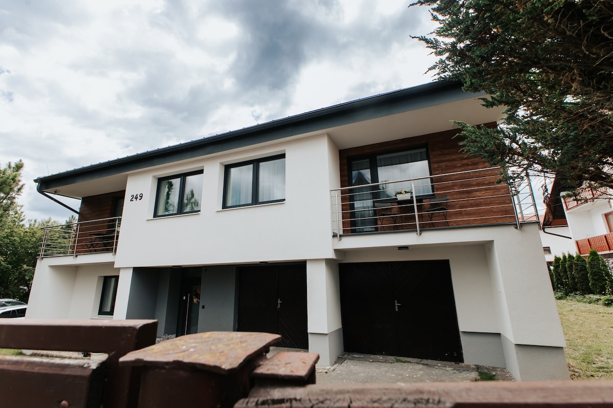 Apartamento de 2 habitaciones amueblado con buen gusto y de alta calidad con balcón en un pintoresco pueblo justo debajo de los Altos Tatras, cerca de Poprad y Starý Smokovec, con vistas a los Tatras, aparcamiento gratuito en el patio, privacidad y equipamiento completo. Adecuado para 1-6 personas. La cama doble plegable tiene colchones dormeo de calidad. Por favor, respete que también tengo cosas personales en él. La entrada/salida de la autopista D1 está a unos 5 minutos en coche. Las instalaciones se desinfectan a fondo después de cada salida de los huéspedes.