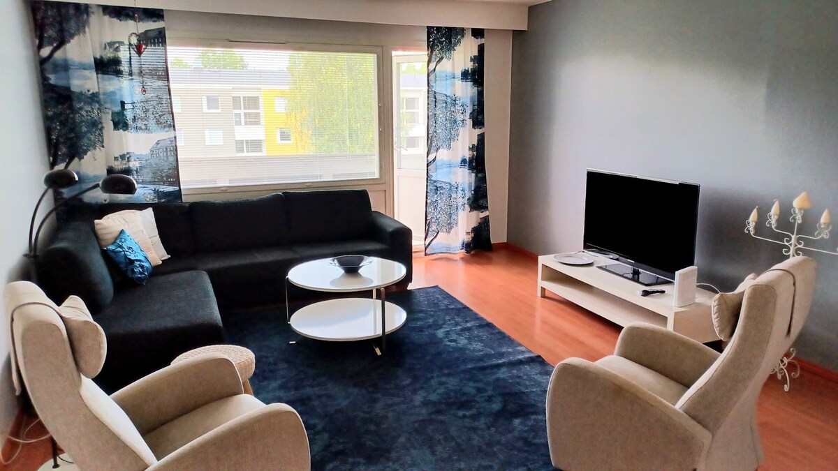 Hyvällä maulla sisustettu valoisa uusi kaksio aivan kauppakeskus Puuvillan vieressä. Asunnon sijainti on hyvin keskeinen mutta kuitenkin ilman liikenteen melua. Keskustaan n.1km, Kirjurinluotoon 900m. Huoneistossa on kaikki tarvittavat kodinkoneet sekä kuivaava pyykinpesukone. Parivuode ja kahden hengen vuodesohva. Tarvittaessa käyttöön saa lisäksi varavuoteen yhdelle. Huoneistossa 55 tuumainen TV, radio ja Wifi/valokuitu. Viihtyisä patio pihakalusteineen ja autopaikka pihassa.