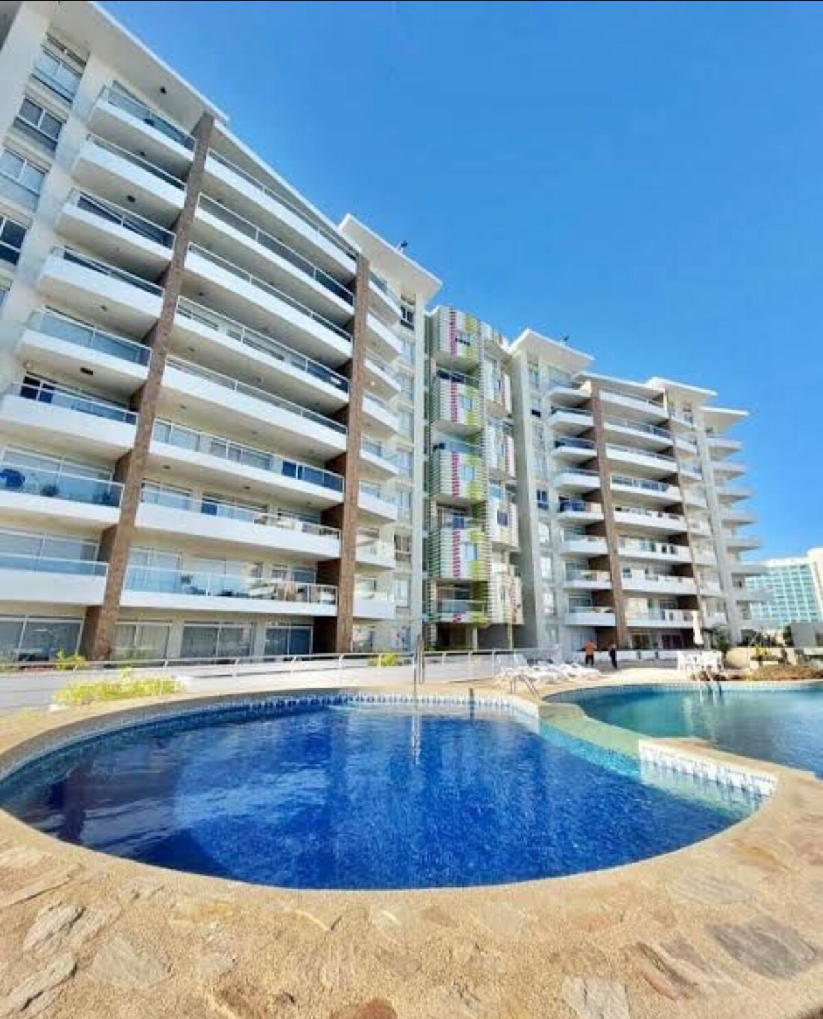 Acogedor y cómodo apartamento en frente de la playa con vistas panorámicas, disfruta de la brisa en el balcón del piso 12 y escucha el mar desde tu habitación. Báñate en la piscina, jacuzzi o playa con acceso privado, hazte tus barbecue en la piscina o juega tennis en las canchas, camina al casino o restaurantes, o vete de compras al centro comercial de la urbanización. El apartamento está totalmente amoblado, cuenta también con tanques de agua, WIFI y aire acondicionado central.