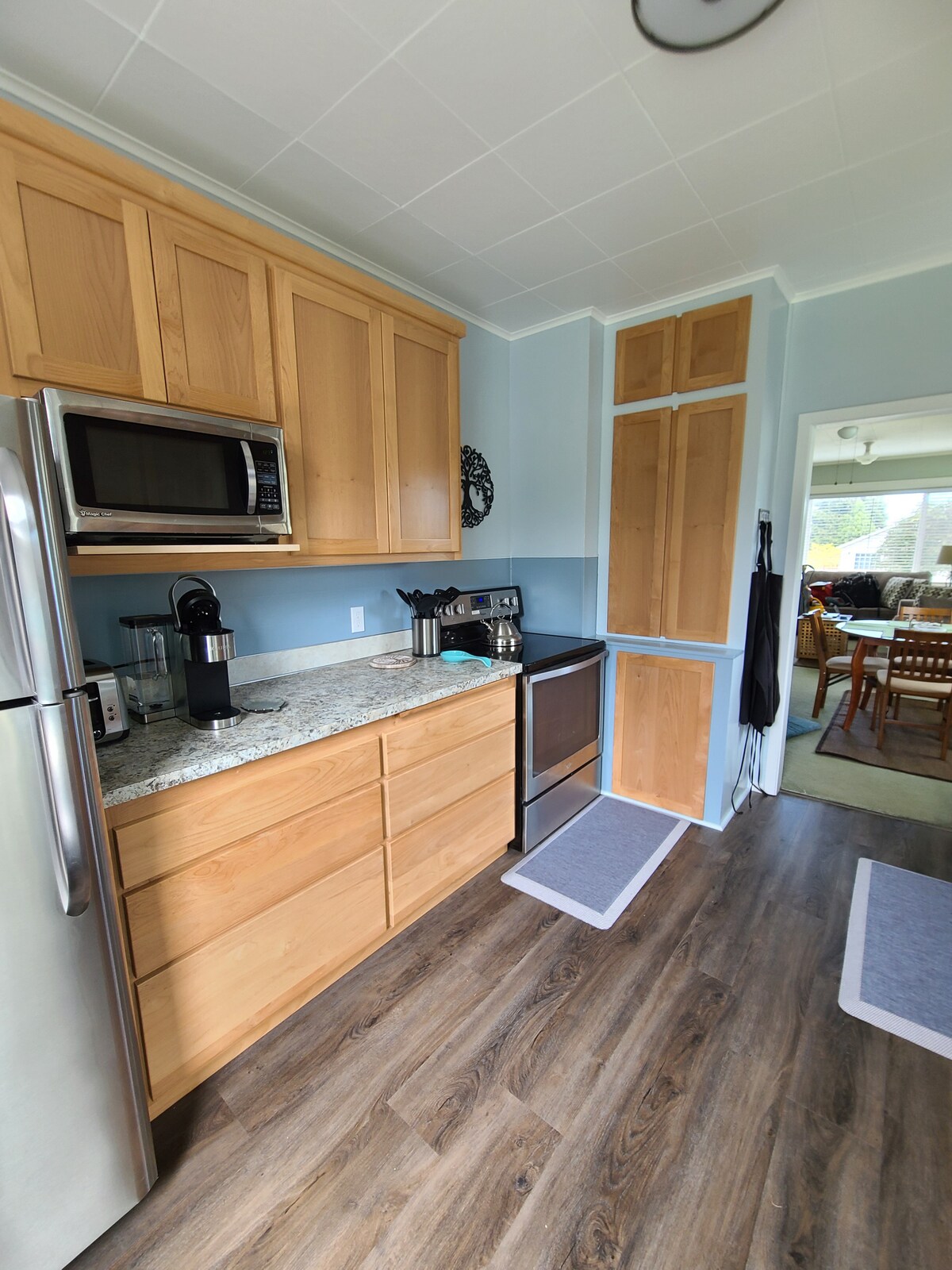 In Sequim, on 7 acres, lies a cozy two-bedroom cottage, ideal for your upcoming getaway. Enjoy a fully stocked kitchen, with range, fridge, micro, dishwasher, coffee maker, air fryer, coffee, spices. Enjoy the cozy living room, TV/Roku Relax on the porch. Enjoy deer, quail, birds. Woodpeckers, Chickadee's, Junko's, You will most likely see hawks, eagles, maybe an owl. Easy 25-minute drive to explore the stunning Olympic National Park, orJohn Wayne Marina, 11-minutes away. New upgrades