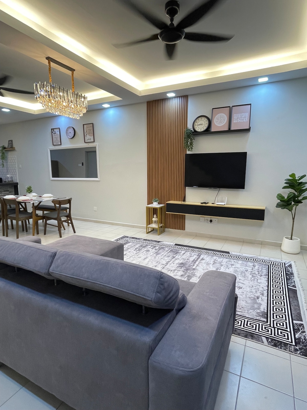 - Un amplio salón con toques contemporáneos, perfecto para relajarse y pasar tiempo juntos. - Ambiente tranquilo y acogedor con paletas de colores suaves y cortinas de alta calidad. • Aire acondicionado en el salón y los dormitorios para garantizar una experiencia refrescante y reparadora. - Tanto si se trata de un viaje en familia como de una escapada con amigos íntimos, nuestra casa de familia es tu puerta de entrada a la comodidad, la elegancia y la tranquilidad. - Convenientemente situado a poca distancia en coche de la principal atracción de Port Dickson