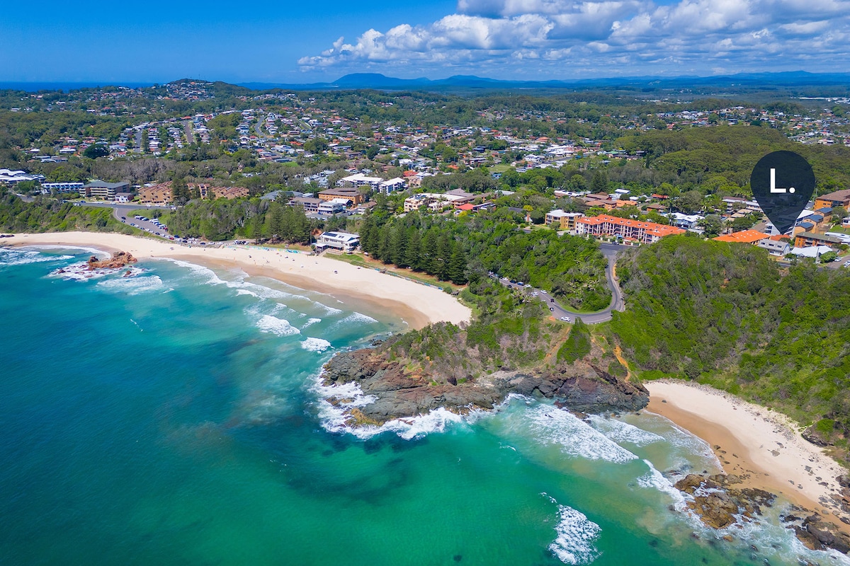 Casa moderna arquitectónicamente impresionante con paisajes tropicales. Entorno aislado en la cima de la colina en Lighthouse Beach que ofrece vistas al mar desde casi todas las habitaciones. La reserva de acres de mar y la playa de Minors están al otro lado de la carretera (300 metros a pie), Lighthouse Beach a 2 minutos en auto, Shelly Beach a 5 minutos en coche. Port Macquarie CBD a 10 minutos en coche. WIFI GRATUITO. Café Nespresso. Nuestro koala residente "Kilala", el nombre que nuestro niño de 3 años llama el koala, deambula por los árboles alrededor de la casa.