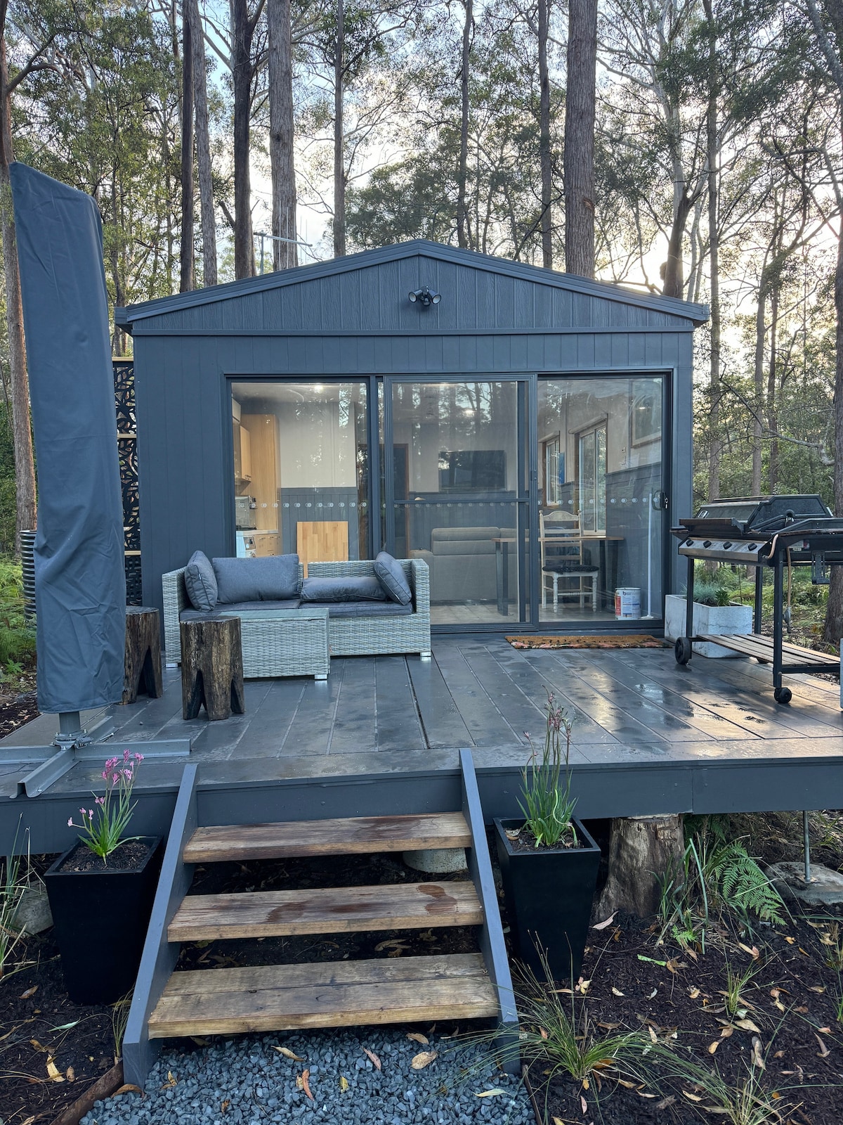 Bienvenido a «Bangalay», una moderna y acogedora suite de invitados con su propia entrada privada con cerradura, ideal para solteros o parejas. Situada entre jardines idílicos en una zona tranquila de Lighthouse Beach, se encuentra a 15 minutos a pie del icónico faro. Shelley Beach, Lighthouse Beach y las cafeterías están a 5 minutos en coche. Se puede acceder al paseo costero a 400 metros. Haz tanto como quieras. Disfruta de la zona de comedor/barbacoa/fogata al aire libre y de tu propio aparcamiento fuera de la vía pública. No se admiten mascotas.