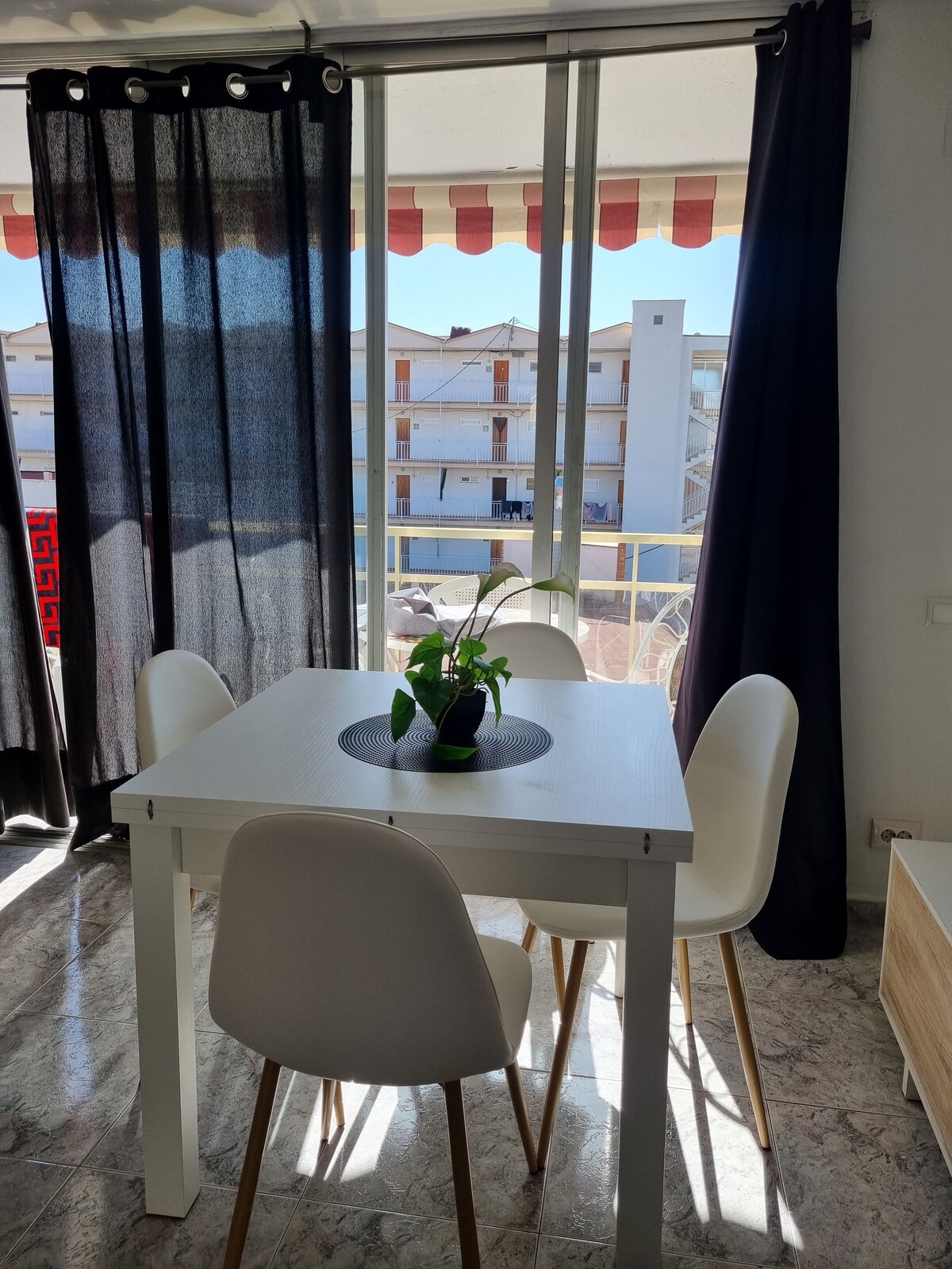 Apartamento para 6 personas a 5 min de Portaventura en coche y a 400m de la playa andando, dispone de dos habitaciones, una matrimonial con armario empotrado, y otra tipo camarote con un sofá cama, salón-comedor amplio con otro sofa cama, smart tv, WIFI, AIRE ACONDICIONADO, lavadora, plancha , cocina y baño completos, balcón con sofá chill-out, espacioso y soleado con bonitas vistas.Dos piscinas, parque infantil, jardines, mini golf, ping-pong, pista de basquet, futbol y frontón.