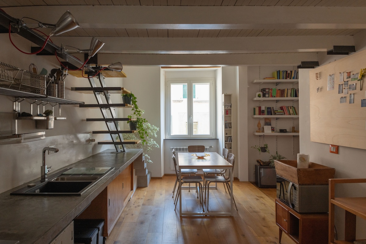 La Ventana-residencia artistica es un alojamiento atípico para el centro histórico de Génova. El apartamento, equipado con un altillo habitable, está situado en un edificio antiguo y ha sido reformado con atención a los detalles, combinando el estilo moderno y la tradición. Se encuentra en una ubicación excelente, a 50 metros de Via San Lorenzo, la calle principal peatonal en el corazón del centro histórico que alberga la catedral de la ciudad, y a 350 metros del Acuario. (010025-LT-1490; Código CIN: IT010025C2E46GNBPJ)