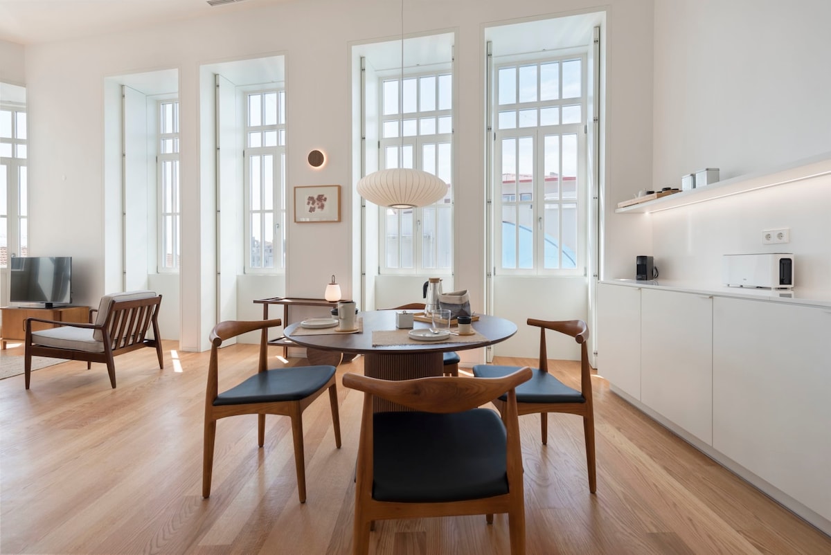 Ubicado en el segundo piso, este apartamento para un máximo de cuatro personas cuenta con aire acondicionado, una combinación de lavadora y secadora, una sala de meditación/minigimnasio y un balcón orientado al frente. El dormitorio de la planta baja se abre a la sala de estar a través de una puerta corredera. Cerca de la Rua de Santa Catarina y el mercado de Bolhão. Para los huéspedes que viajen con niños pequeños, hay disponible un paquete para bebés bajo petición (25 €) que incluye una cuna con ropa de cama, una trona, una bañera, artículos para bebés y una toalla para bebés.