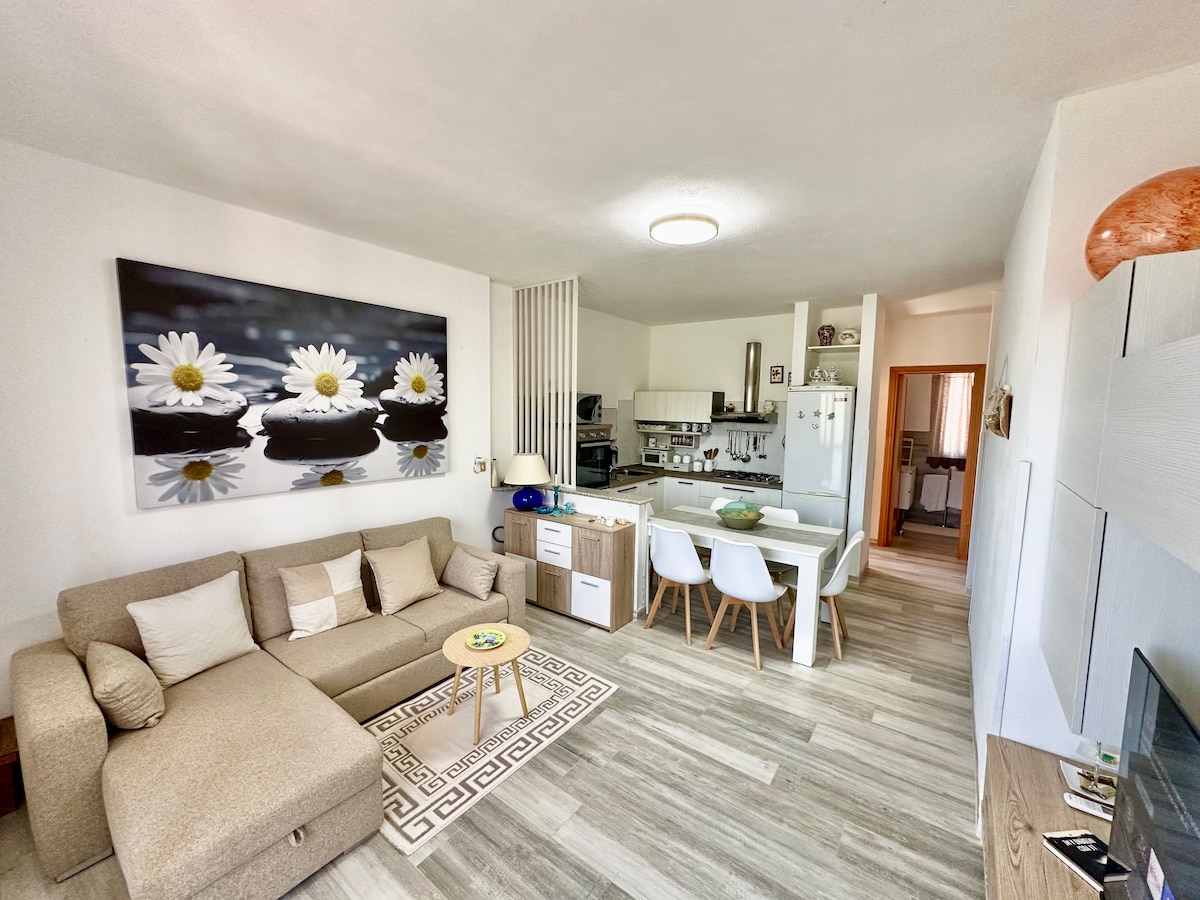 Espléndido apartamento a 5 minutos a pie de la playa, con una gran terraza con vistas al mar, jardín privado con barbacoa y ducha, 2 dormitorios con sábanas incluidas, de los cuales el matrimonial con vistas al mar, una gran sala con cocina americana con horno y fogones, tostadora, hervidor de agua y cafetera. Cuna y trona incluidas. Aparcamiento privado, baño con una amplia ducha de obra. Wifi de fibra de 1 GB/s. Smart TV de última generación con acceso a Netflix gratuito.