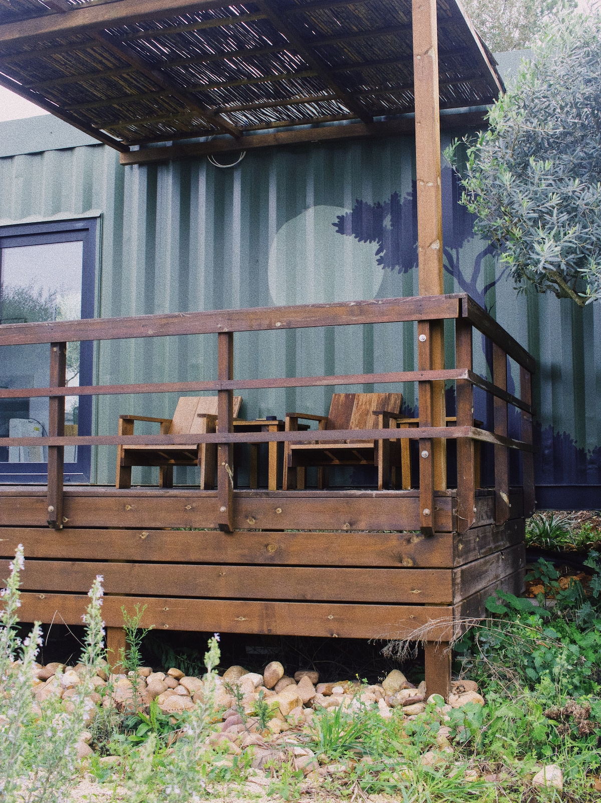 Alojamientos vacacionales en contenedores con asientos al aire libre