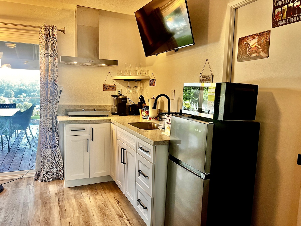 Nuestra casa de huéspedes 1b1b (485 pies cuadrados) cuenta con una entrada privada, baño completo, mini split completamente nuevo con calefacción y refrigeración, y una lavadora y secadora en la unidad. La cocina completa está equipada para todas tus necesidades culinarias, y encontrarás una estación de café y té lista para ayudarte a comenzar bien tus mañanas. Disfruta de WiFi de alta velocidad para mantenerte conectado y una TV inteligente para las noches relajantes. Ya sea que estés aquí para trabajar o relajarte, te encantará la comodidad, la privacidad y el ambiente tranquilo de nuestro tranquilo vecindario.