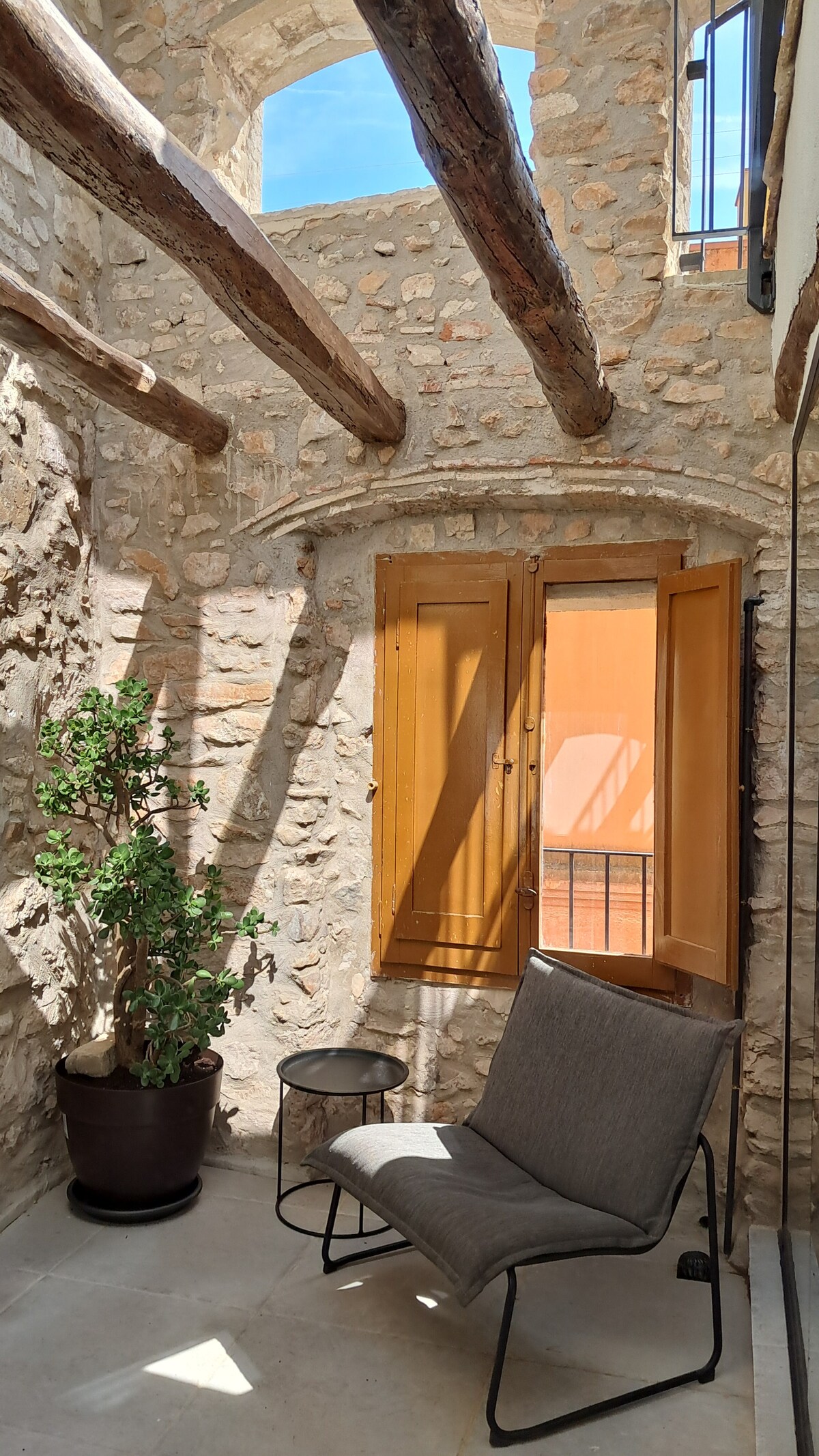 English: We transformed Cal Joanet, an old shepherd's hut in the village, in a cozy and functional home while preserving the original character (stone walls, wooden beams). You'll have the whole house for you and all amenities. Català: Hem transformat Cal Joanet, una antiga caseta de pastor dins del poble, en un habitatge acollidor i funcional tot preservant el caràcter original (parets de pedra, bigues de fusta). Tindreu la casa sencera per a vosaltres i totes comoditats.