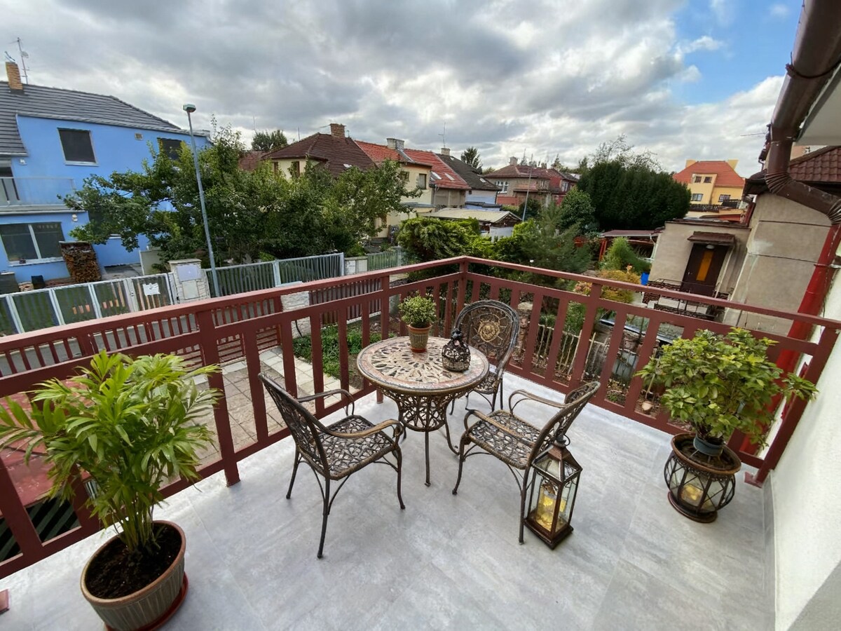 Pequeña casa adosada renovada, elegante e interesante. Para estadías de más de 1 mes, solicitamos un contrato de alquiler. Espacio utilizable de 90 metros cuadrados, 3 pisos, 2 escaleras. Planta baja: pasillo pequeño, cocina, baño, inodoroyducha. 1er piso - dormitorio - cama matrimonial 180x200 y balcón, inodoro. Segundo piso: sala de estar, 1 sofá plegable, balcón, escritorio con silla. Sin puertas. Wifi. Ambiente especial, a 2 minutos del tranvía, a 10 minutos en tranvía del metro, a poca distancia a pie del castillo de Praga, zona residencial de lujo.