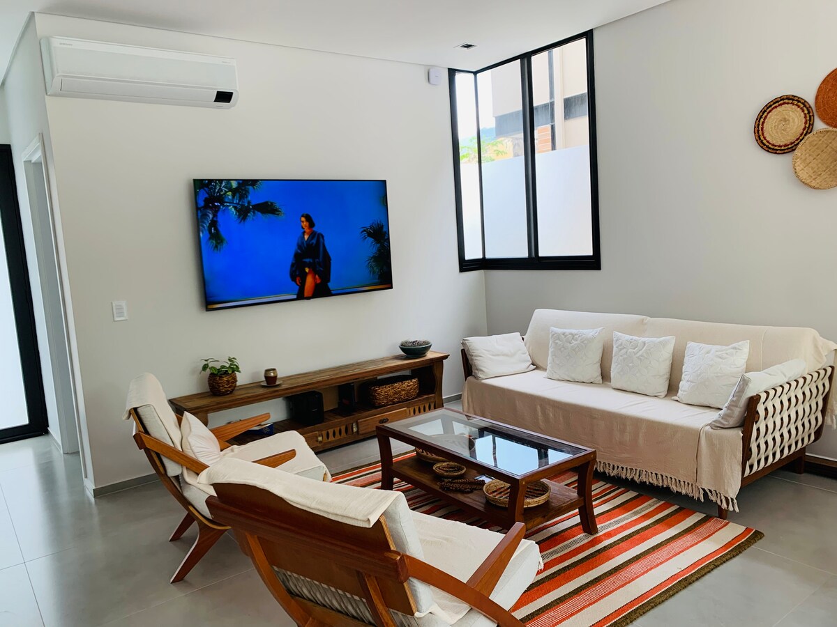 Tómate un descanso para relajarte en nuestro acogedor chalet, perfecto para parejas y familias que buscan comodidad y tranquilidad. Con una ubicación privilegiada a solo 100 metros de la playa de Guaecá y a 15 minutos del centro de São Sebastião, el espacio tiene una entrada independiente, una cómoda suite, una cocina completa y una agradable zona al aire libre para relajarse. El chalet se encuentra en un barrio residencial, familiar, plano, seguro y de fácil acceso, con seguridad las 24 horas para mayor comodidad.