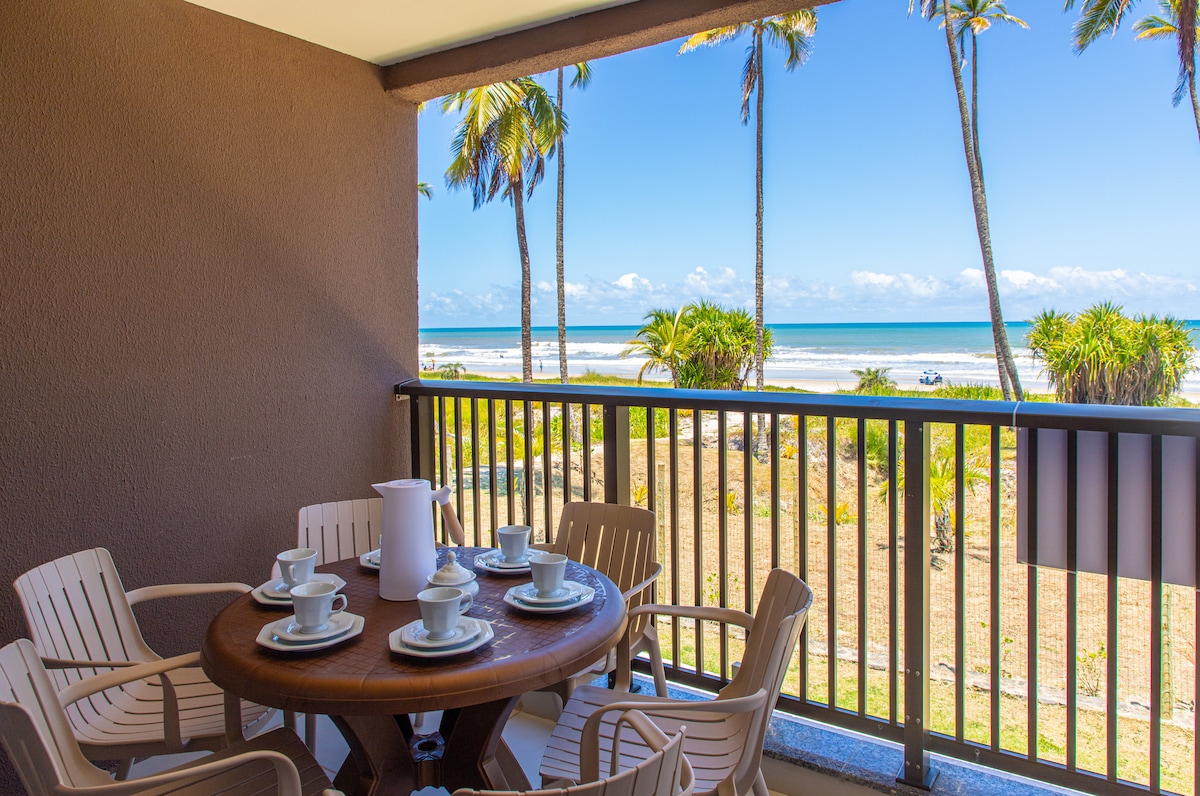 Frente a una hermosa playa. Condominio a pie de arena y con acceso a la playa. - Piscinas combinadas con terraza. - Playa con puesto de helados a 5 minutos a pie. - Apartamento con aire acondicionado en la suite, en el dormitorio y en la sala de estar. - Todos los muebles y acabados son finos y de primera calidad. - Apartamento con vista al mar. Venga a disfrutar de este paraíso de condominio. PD: Se permite un máximo de 6 huéspedes adultos. Ubicación: Después de los Resorts Tororomba y Canabrava.