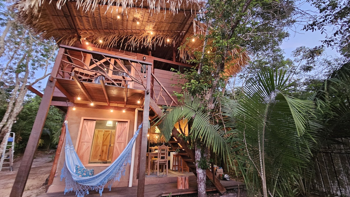 Natureza, sossego, estilo, privacidade, conforto... tudo isso você encontra aqui.. Casinha nova, construída ao estilo regional amazônico em meio à floresta da comunidade do caranazal. Localizada a 5,5km do centro de Alter do Chão nossa hospedagem é uma ótima opção pra quem procura um lugar mais tranquilo e em conexão com a exuberante natureza local. Terreno amplo com mata, jardim, uma pequena horta, ducha externa e tudo que você precisa para viver o melhor da Amazônia...