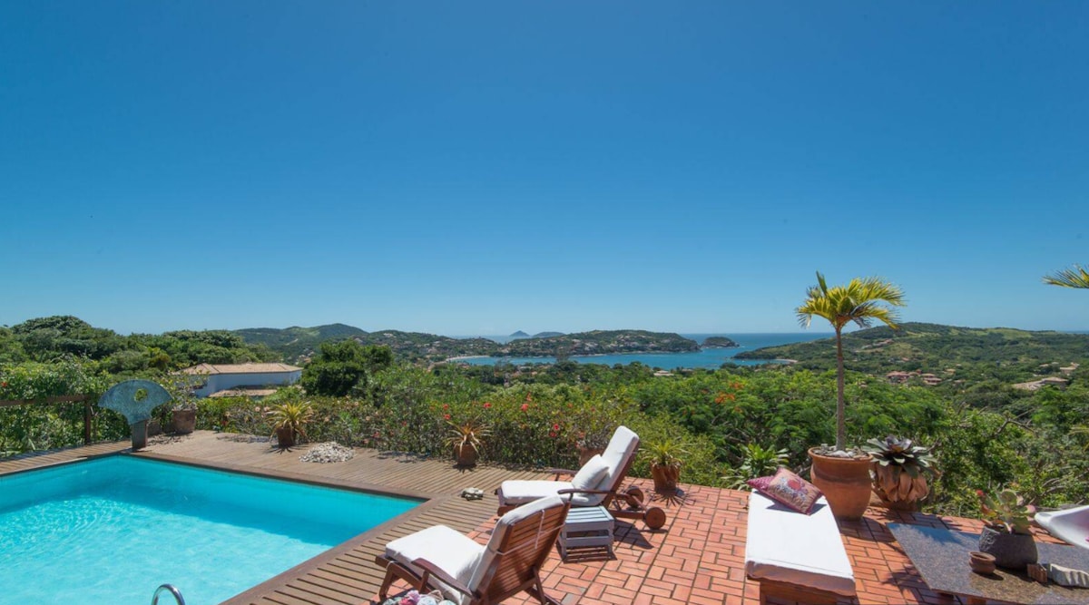 Casa de lujo recientemente renovada, espaciosa y, con vistas panorámicas de las playas de Búzios. Situada en condominio cerrado en la esquina derecha de la playa de Geribá, con seguridad 24 horas y entrada privada a la playa. Sauna, piscina y parrillas propias. 5 habitaciones (con baño). Todos con aire acondicionado. Suite máster c/hidromasaje y hermosa vista! Cocina completamente equipada, integrada con el comedor y la sala de estar. Mucama incluida en la diaria p/4 horas (limpieza solamente)