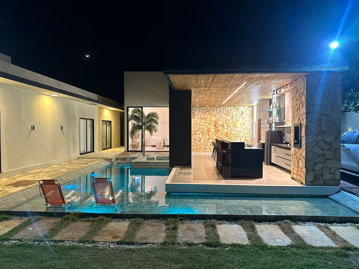 Encantadora casa en Preá, Ceará, a solo 900 metros de la playa. Perfecto para familias o amigos, cuenta con 2 dormitorios, 2 baños, una cocina totalmente equipada y wifi. Disfruta de la piscina privada con jacuzzi y relájate en las hamacas. Cerca de lugares de kitesurf y restaurantes locales, esta casa combina la comodidad moderna con un ambiente tropical. Un lugar ideal para relajarse y explorar la impresionante costa brasileña.
