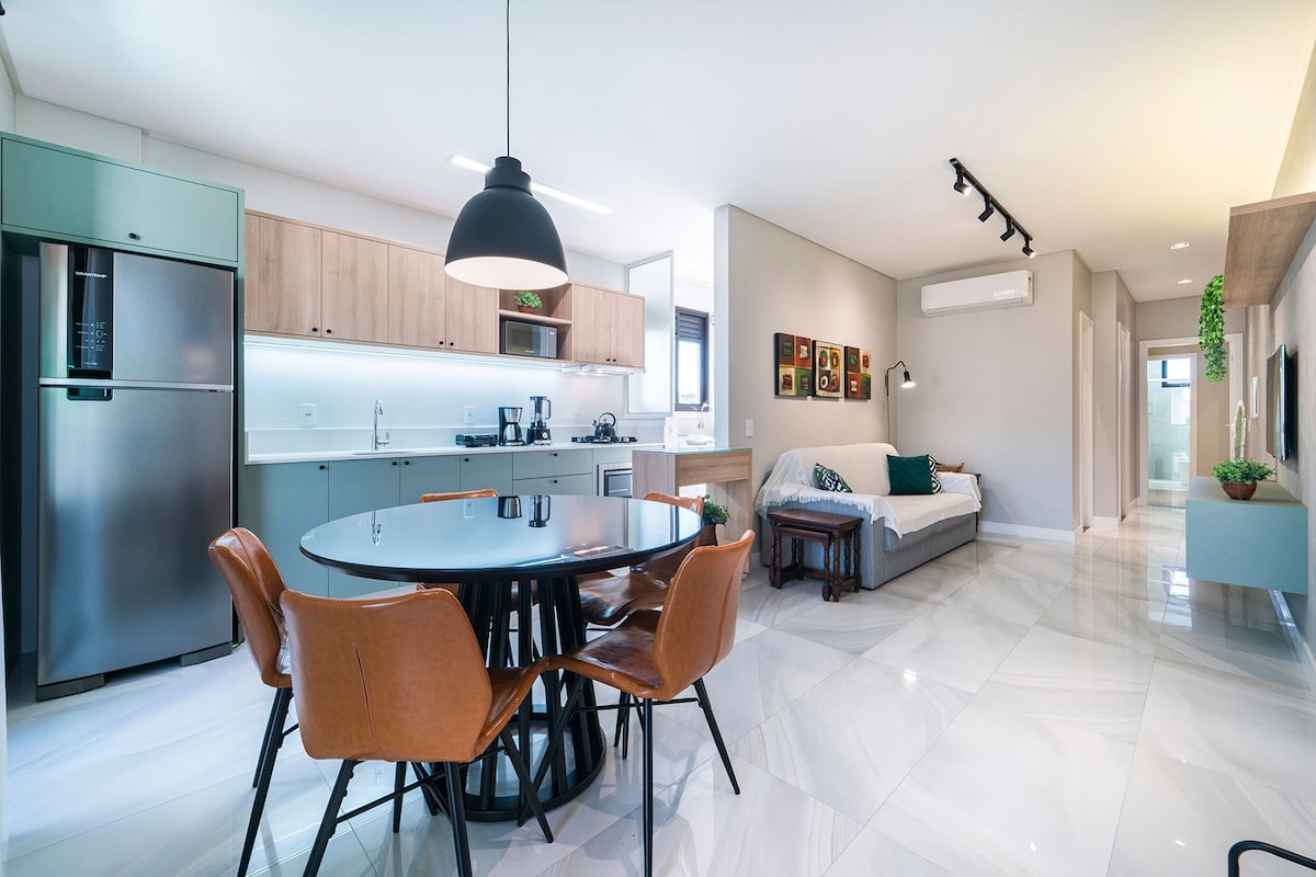 Apartamento sofisticado a solo 500 m de la playa en el barrio José Amândio. Totalmente equipado y climatizado, cuenta con un dormitorio con cama queen y smart TV, sala de estar con sofá cama y cocina completa. Disfruta de la parrilla y de la vista panorámica de la ciudad. El edificio ofrece piscinas climatizadas, jacuzzi, gimnasio, sala de juegos, estacionamiento cubierto y bicicletas que permiten explorar los alrededores de forma placentera. ¡Reserva ya y vive Bombinhas con confort y estilo!