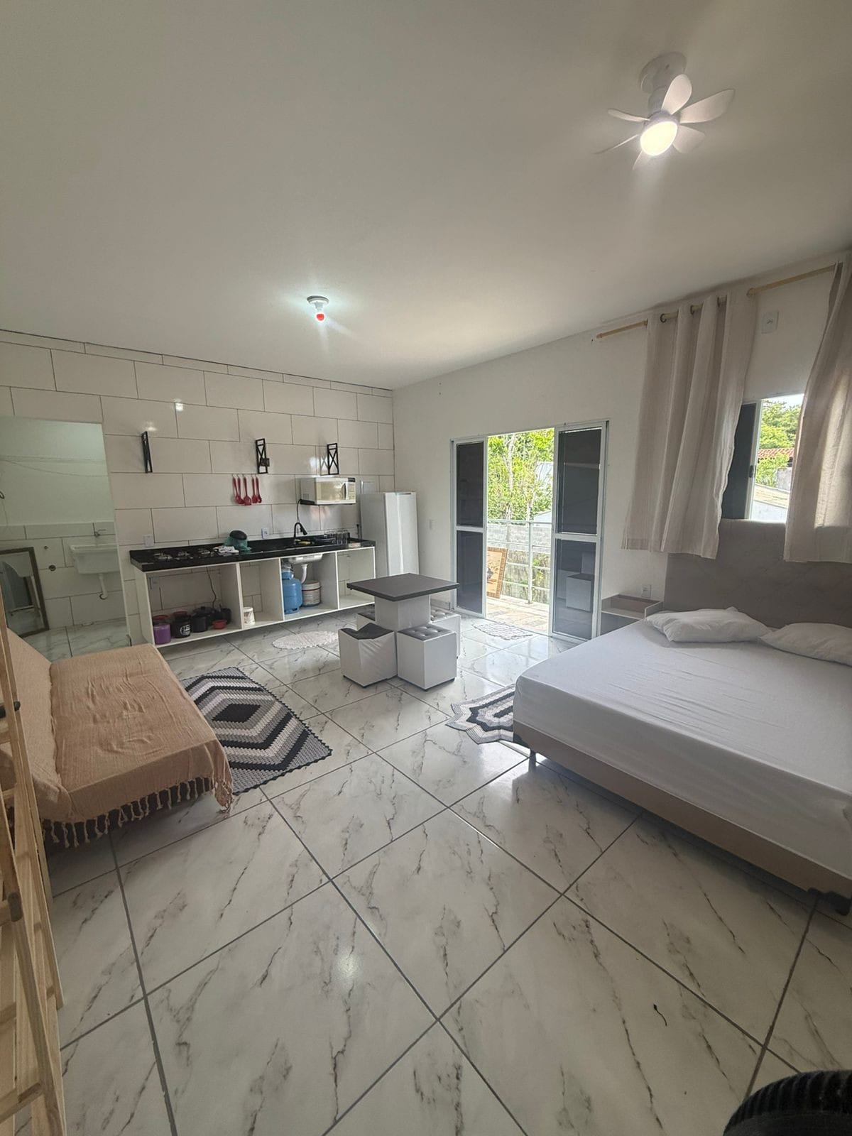Encantador loft,situado en la arena de una de las playas más bonitas y modernas de Ilhabela. Cuidadosamente equipada para ofrecer una estancia cómoda e inolvidable, cuenta con aire acondicionado, ventilador de techo, ducha eléctrica con puesto,nevera, fregadero, microondas, horno eléctrico, cafetera y otros accesorios. Sofá cama doble, cama individual y dos colchones dobles inflables adicionales. En el exterior tenemos una terraza en la arena frente al mar, una ducha, una hamaca columpio debajo de una copa de árbol, mesas y bancos.