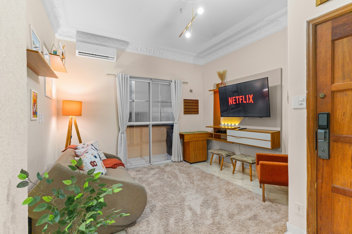 Este apartamento de 55 m² es ideal para parejas y ejecutivos en viajes de negocios. Tiene todo lo que esperas de un apartamento: practicidad y tecnología. Para aquellos que vienen a pasar la Nochevieja en Santos, pueden disfrutar de las festividades sin siquiera salir del edificio. Desde el área de la piscina, puedes disfrutar de la vista al mar, los fuegos artificiales y el ambiente festivo de la ciudad sin tener que lidiar con el tráfico, las multitudes o un viaje agotador después de los fuegos artificiales.