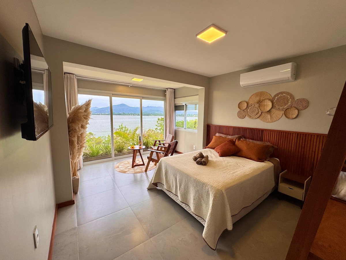Apartamento com vista panorâmica e deck na lagoa