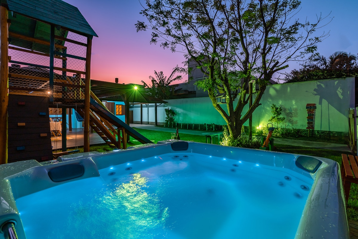 Casa FAMILIAR cómoda y ACOGEDORA (para niños) - Ubicado en Praia da Barra de Ibiraquera - IMBITUBA/SC, cerca del mar y la laguna (a pie). - Cocina y sala de estar, wifi, 3 dormitorios - Aire acondicionado., camas tamaño queen y televisor inteligente, ropa de cama y baño incluida y espacio de oficina en casa Patio trasero Jacuzzi climatizado en un entorno abierto Área de juegos exclusiva y apta para mascotas Mesa de billar y ping pong, parrilla - Lavandería completa, bicicletas, sillas de playa y sombrilla🏖️ @bluehouseibira