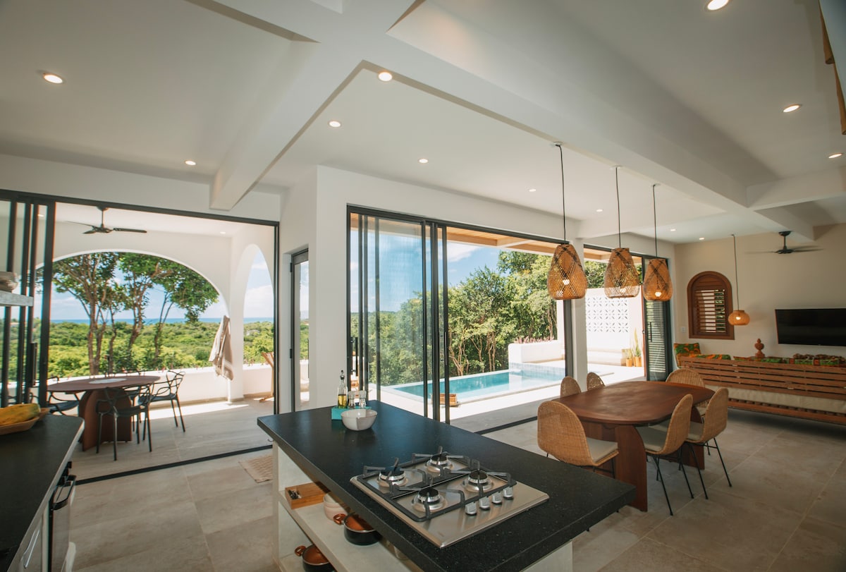 Tu escapada romántica para dos, con impresionantes vistas al mar de 180°, te espera. A solo 1 minuto a pie de tres magníficos restaurantes y a 7-12 minutos a pie de tres playas. Tu romántico refugio incluye un jacuzzi climatizado, una piscina privada, una cama tamaño king, una cocina totalmente equipada y wifi rápido. Envíanos un mensaje para recibir ofertas exclusivas. ★★★★★“Lugar excepcional con tranquilidad, privacidad, vista y comodidad”