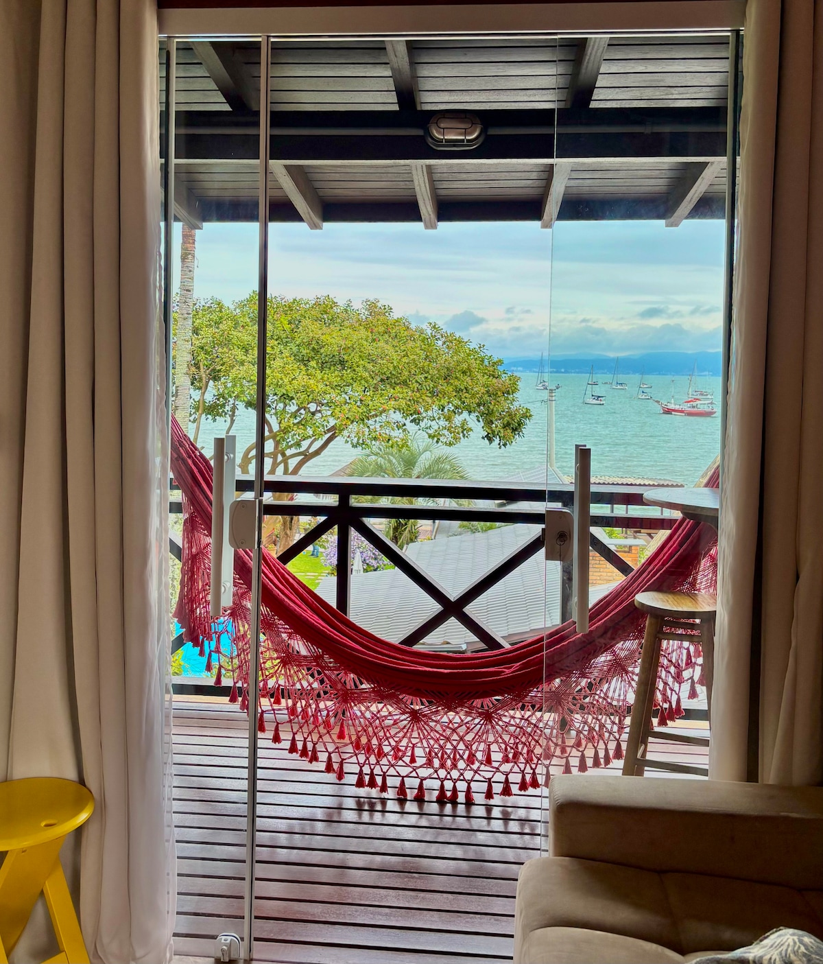 Pousada Mar de Dentro, estudio con balcón y vista.