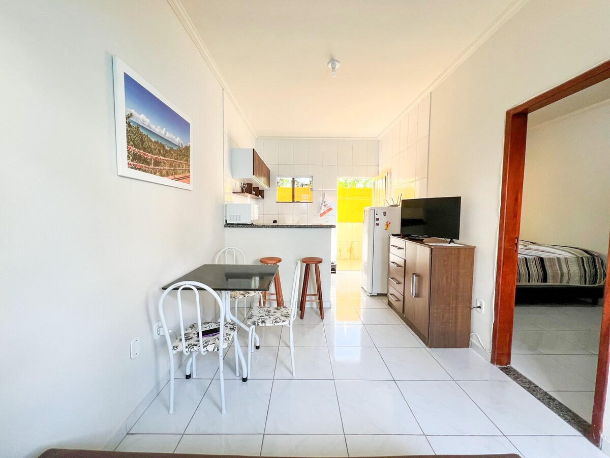 Cerca de la playa (800 metros), cerca del centro comercial (300 metros) y a solo 450 metros de la feria indígena. - Apartamento con aire acondicionado; - Ropa de cama, almohadas y toallas. - Televisión inteligente con Netflix y YouTube. - Cocina equipada, con estufa/horno, microondas y nevera; - Utensilios de cocina; - 01 espacio de estacionamiento; - WIFI 200 MEGAS CABRÁLIA NET Ven y descubre las playas más hermosas de la región. Condominio tranquilo y seguro. Excelente lugar para relajarse con la familia.