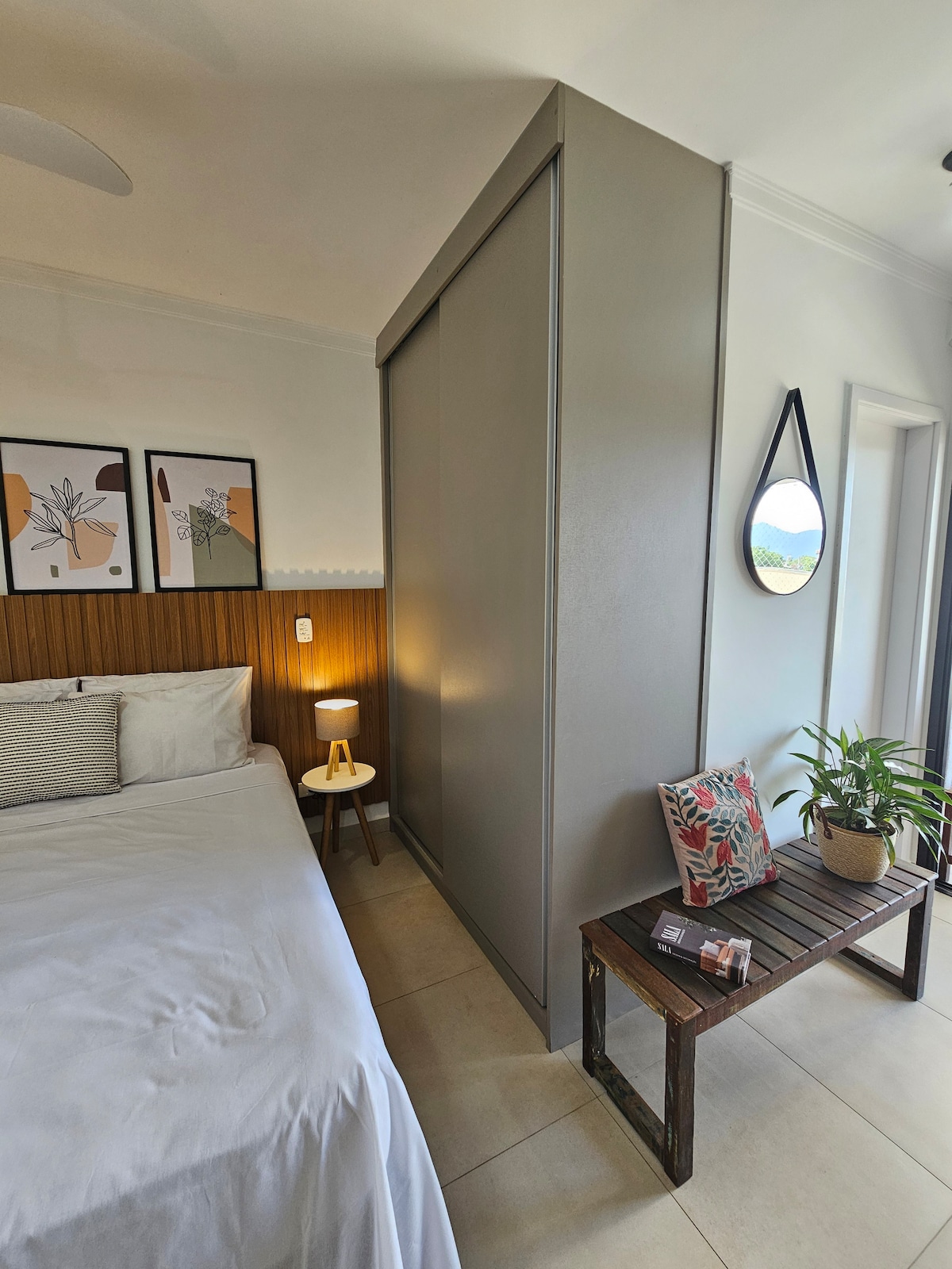Studio novo com projeto assinado por arquiteta, muito lindo e confortável. Está à 400m da Orla da Praia do Perequê Açú. Contamos com: TV smart, Wi-fi de fibra ótica, espaço próprio para trabalhar, cozinha equipada, churrasqueira na varanda e uma vista deslumbrante da Mata Atlântica. No prédio temos piscina, forno para pizza, ducha e garagem com portão eletrônico. Está muito bem localizado, perto do Centro e Rua Turística, além da Rodovia.