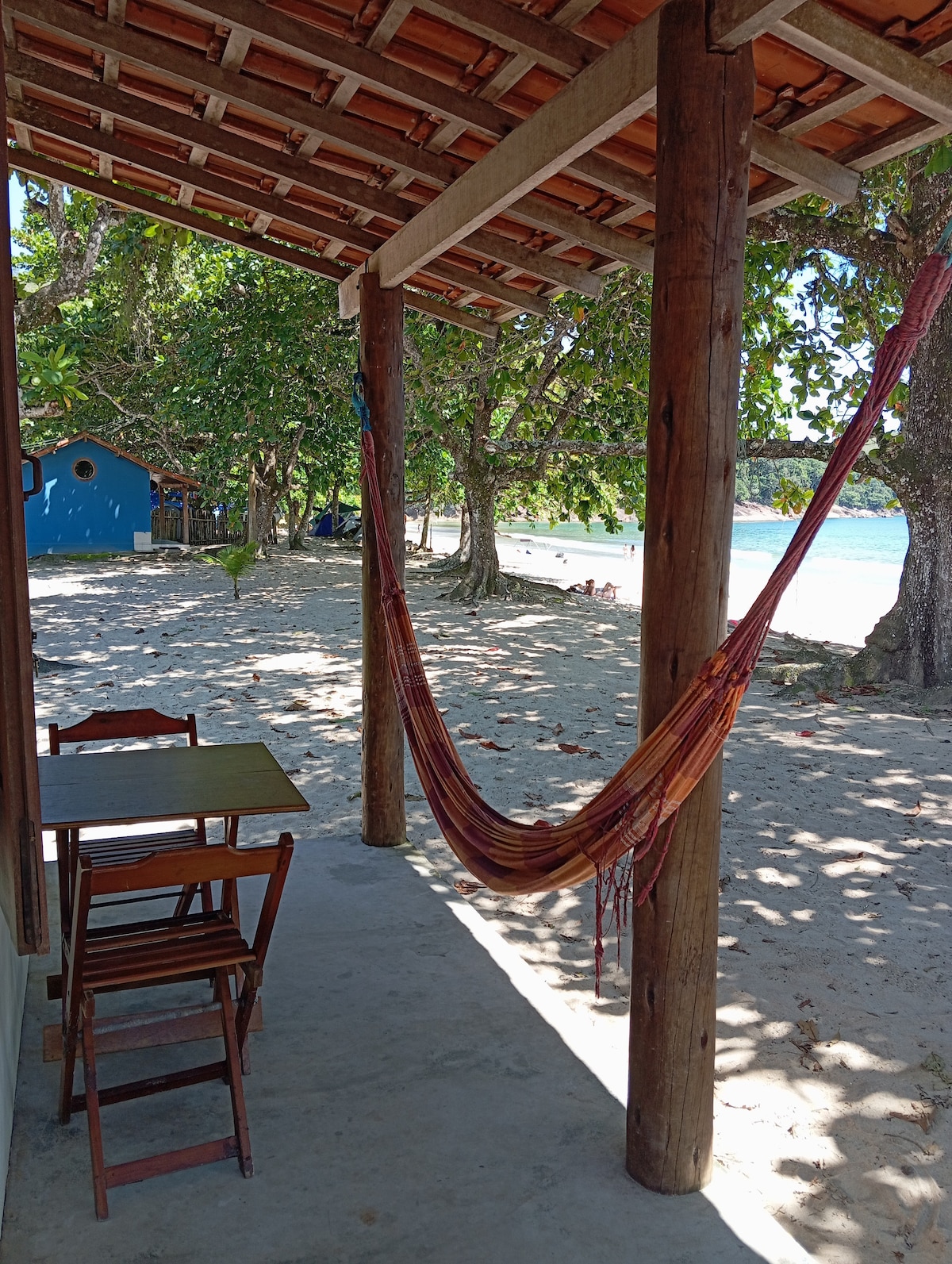 Chalet en la playa de ensueño Paraty Rj, frente al mar, el chalet es una habitación con una cama doble, incluye ropa de cama y toallas y ventilador, cocina con nevera, cocina, ollas, vasos y cubiertos. Baño con ducha de agua caliente, balcón con hamaca y silla de playa Para llegar al chalet, solo se puede acceder por barco o a pie. El sendero dura 1 hora, el barco sale de 8:00 a 17:30