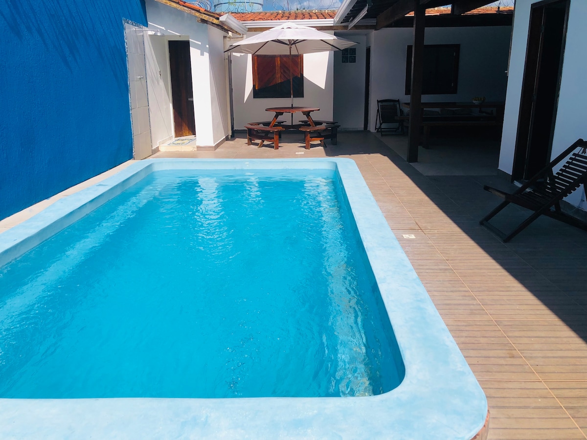 Relájese y diviértase con toda la familia en este lugar. ¡Mar a 3 minutos a pie de la casa (300 m) y también una piscina privada! A diferencia de otros lugares de la zona, esta casa ofrece privacidad con la zona gourmet y la piscina para uso exclusivo para usted y su familia. La calle es la mejor del condominio, con acceso a la primera pasarela a la playa, parque infantil con tirolina y mucha tranquilidad. Las habitaciones tienen aire acondicionado, además de excelentes camas (una king y otra queen size).