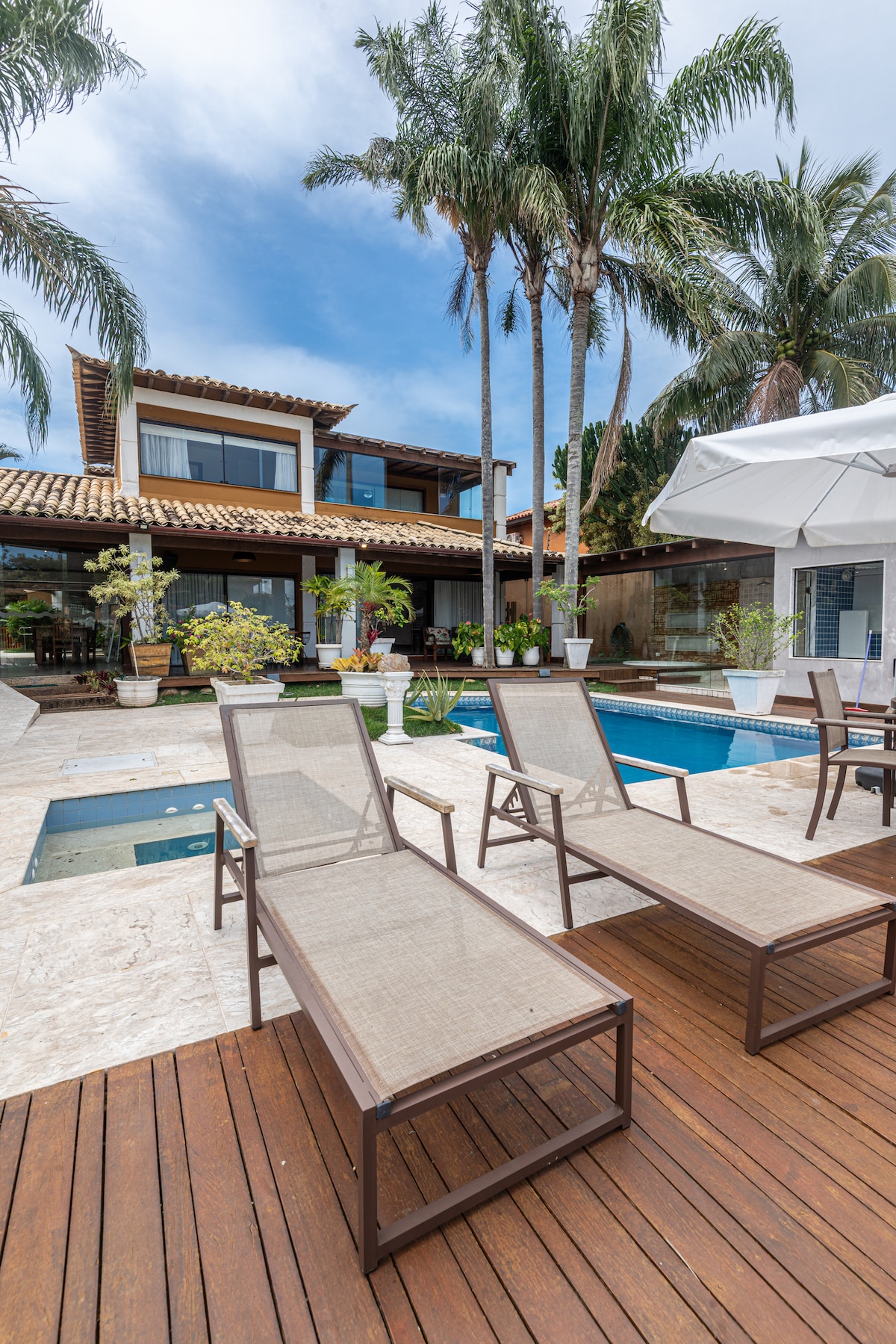Casa com grande jardim, piscina e churrasqueira