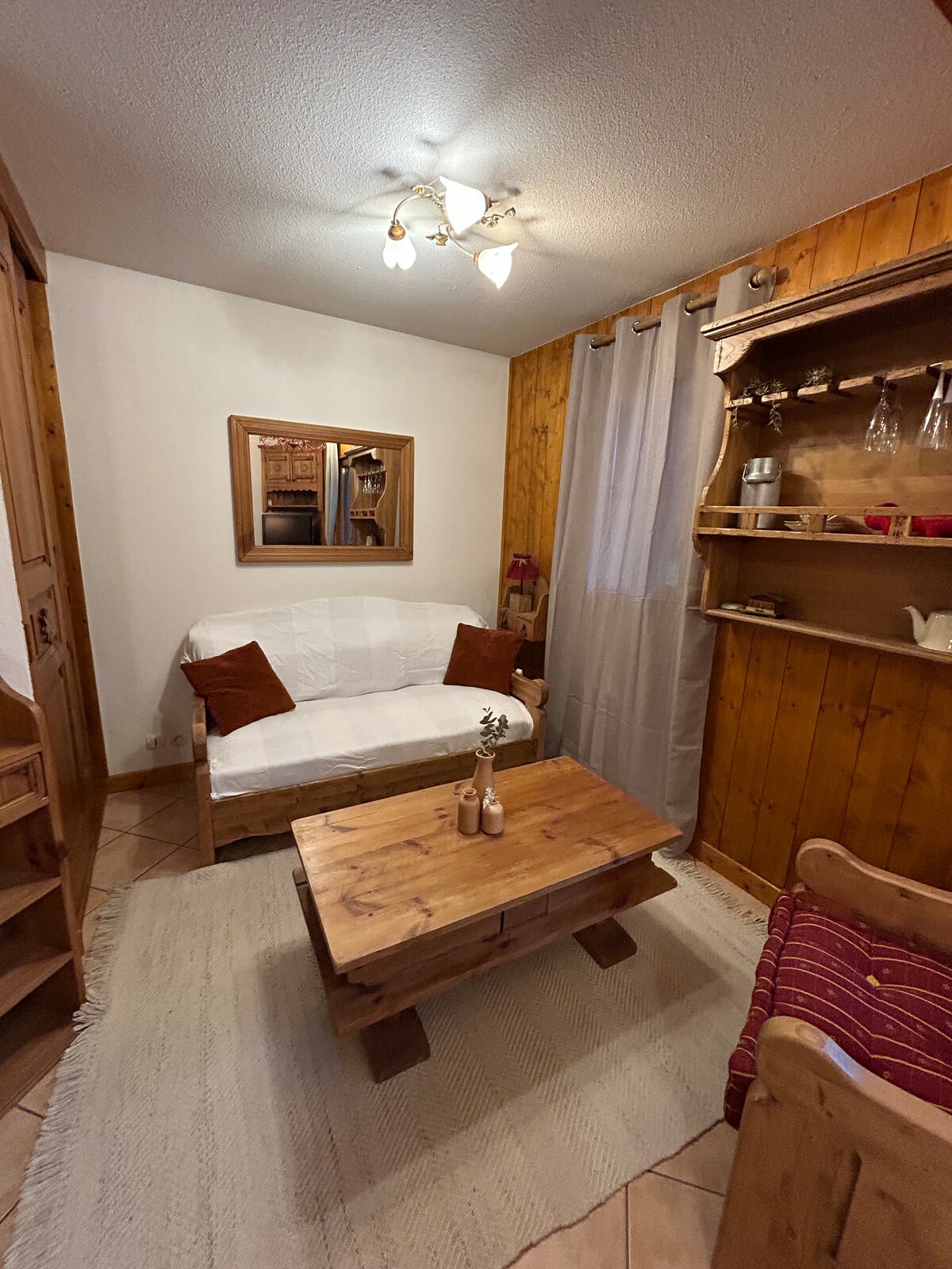 A 4 km de Megève, estudio muy bonito con jacuzzi