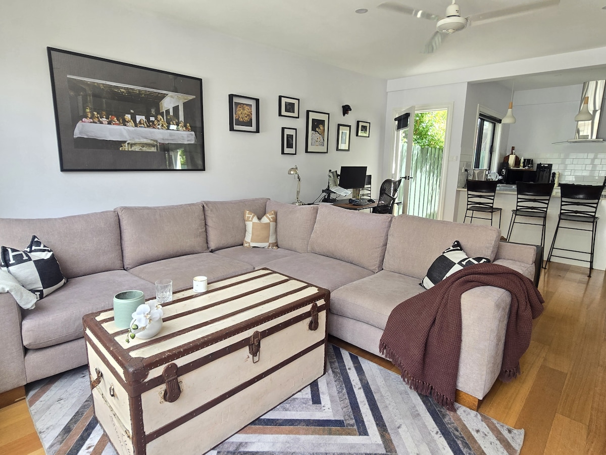 Homely, peaceful, private, spacious Victorian heritage cottage with your own secluded garden and carport, in a quiet neighbourhood conveniently close to everything Melbourne has to offer. Simply walk or tram/train/uber in minutes to the city centre, Aus Open tennis, F1, MCG, live music venues, theatres, parks and bayside beaches. Perfect work-from-home hub, and base for drives to regional and coastal Victoria. For an inner city Melbourne stay that is not an apartment or hotel look no further