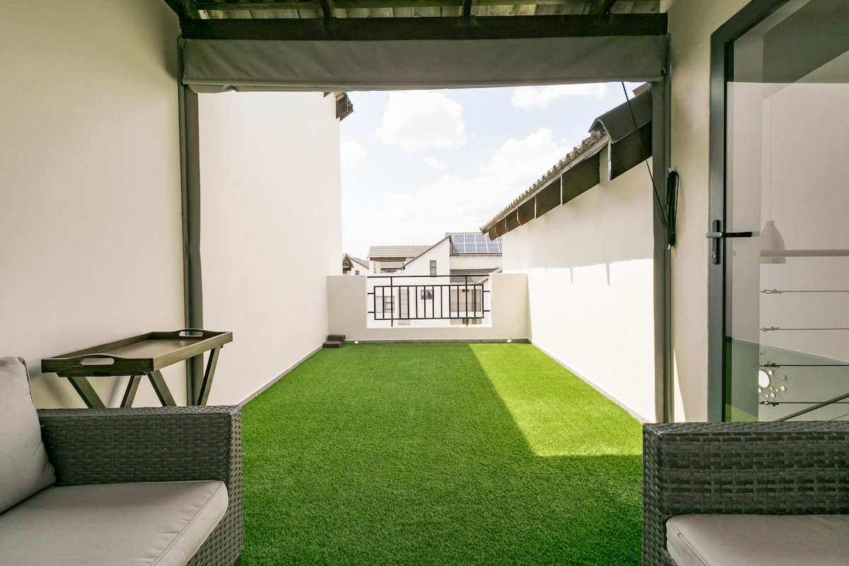 Seguro, elegante y espacioso cerca de Sandton. Relájate en este hermoso apartamento estudio extragrande situado en la segura Thornhill Estate, convenientemente cerca del aeropuerto Sandton y OR Tambo. Con un generoso diseño de planta abierta con una cocina completa, el lujo termina un baño tipo spa con lavabos dobles, una ducha a ras de suelo y una bañera extragrande. Zona de trabajo exclusiva y wifi rápido. Acceso a los servicios de la finca, incluida una piscina compartida. Perfecto para viajes de trabajo, viajeros solitarios o parejas.