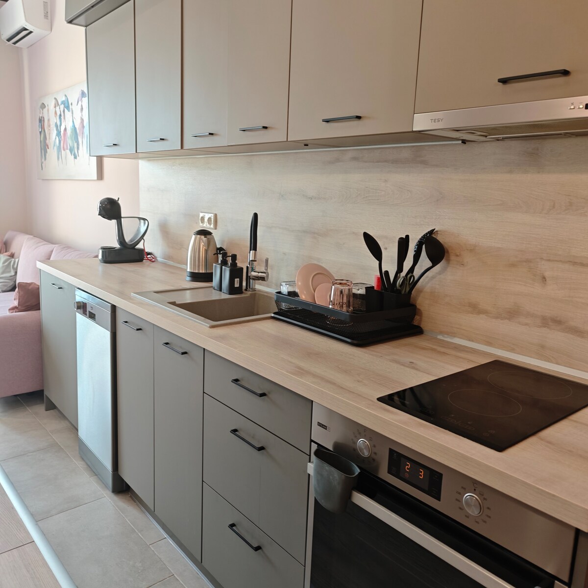 A comfortable and quiet apartment designed for easy living during the winter season. – 20 min walk to centre & beach – Cozy living room with ambient lighting & 75″ TV – Fully equipped kitchen for home cooking – Comfortable bedroom with its own TV – Inverter AC in every room for steady heating – Fast Wi‑Fi, dedicated workspace & washer‑dryer for longer January stays Ideal for longer winter stays, remote work, and guests seeking peace and privacy.