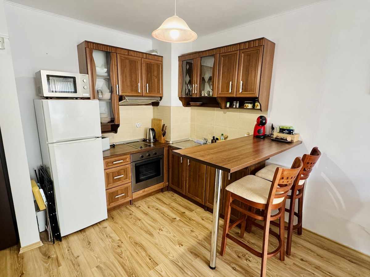 ¡Apartamento nuevo de 2 dormitorios a solo 1 minuto de la principal zona peatonal de Varna! Disfruta de un interior elegante, una cocina totalmente equipada y un jacuzzi interior privado, perfecto para relajarte después de un día fuera. Ideal para parejas, familias o viajeros de negocios. Wifi rápido, aire acondicionado en todas las habitaciones y todas las comodidades para una gran estancia en el corazón de la ciudad. El departamento está situado en la planta baja. 2 plazas de aparcamiento gratuitas 🅿️ 🚗 🚙