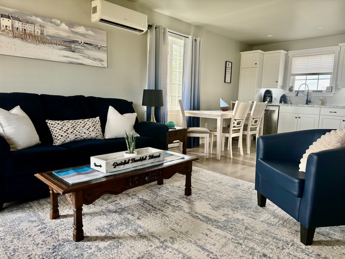 The new house, built and completed in mid-2024, is located on Queen St. Downtown is only 10 minutes away by going on foot, and 5 minutes walking to the bus stop to go everywhere. The in-law suite has two rooms with queen beds, a bathroom, a living/dining room, and a full kitchen. It is near numerous services, including restaurants, pharmacies, grocery stores, PEI Liquor, Sobeys—your Happy Place. Note: The check-in time is 4:00 PM in the summer.