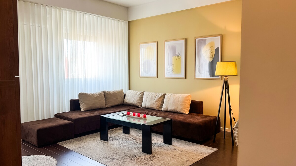 5★ Executive 75m² Flat 5 Min to Center 75m² of luxury 10 mins from Mother Teresa Square. Unlike cramped studios, enjoy a massive 1BR with a separate chef’s kitchen and dining. Private sunrise balcony. • Fast Wi-Fi & A/C • Quiet building, steps from cafes • Dedicated workspace Professional, spacious, and 5-star rated. Perfect for business or long stays. Experience Prishtina’s best without the noise. Book your central retreat today. Book you stay and 🫶🏻 Enjoy 🫶🏻