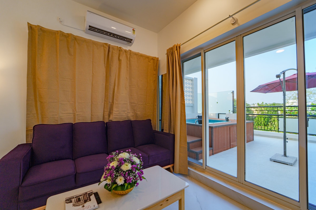 ¡Refugio tranquilo de 1BHK con piscina para 3 personas!