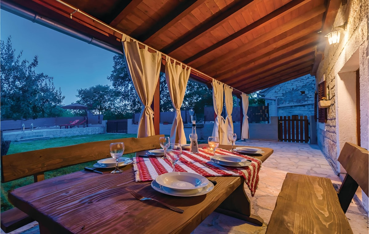 Esta casa de vacaciones en una parcela de 1300 m² consta de un edificio principal y una letrina. La casa principal tiene una sala de estar, dos dormitorios, dos baños y una galería con un dormitorio (altura mínima del techo de 60 cm). El edificio secundario cuenta con una cocina, un baño, una habitación con sauna y bañera de hidromasaje, y una pared de vidrio con vistas a la piscina. El área exterior incluye barbacoa. La proximidad a NP Krka, Sibenik, Vodice y las atracciones locales lo hacen ideal para explorar y disfrutar de la gastronomía tradicional.