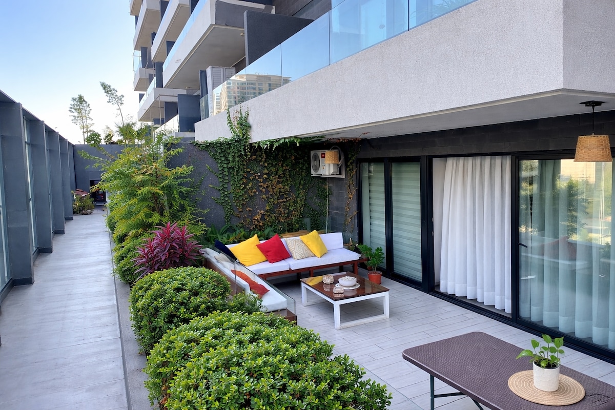 Despierta en el exclusivo barrio El Golf. Departamentos amplios, luminosos y completamente equipados. Cuenta con 3 dormitorios (principal en suite), living comedor integrado, cocina full equipada y una sala de estar ideal para home office. Acceso 100% autónomo, WiFi de alta velocidad y estándares de limpieza impecables. Ubicado a pasos del Metro y rodeado de restaurantes, cafés, parques y todo lo necesario para moverte por Santiago con total comodidad.