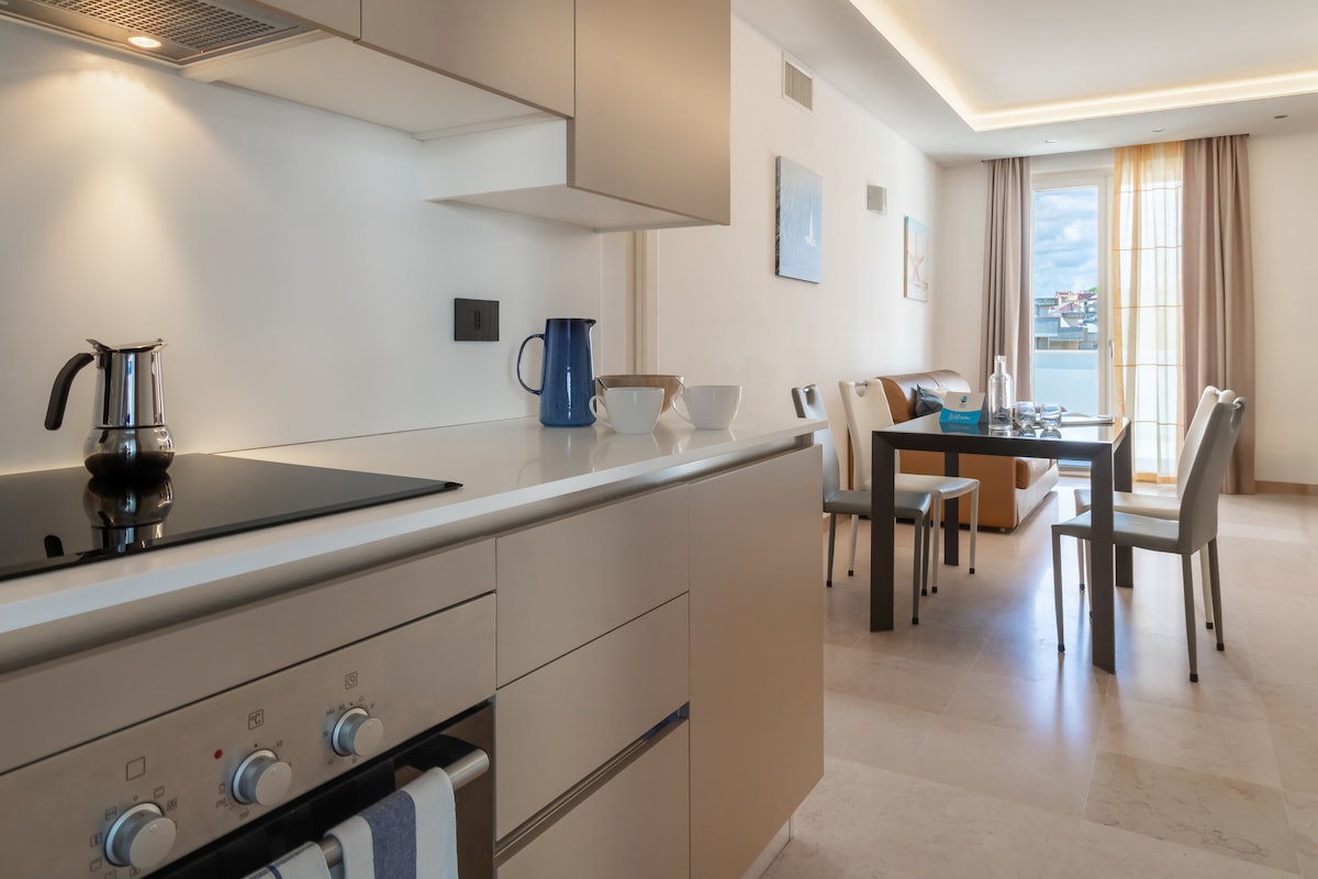 Ático elegante y acogedor en una ubicación estratégica a pocos metros de la céntrica Piazza del Popolo y de los principales puntos de interés de la ciudad a los que se puede llegar a pie. El apartamento consta de una luminosa entrada a la sala de estar con cocina en la isla de dos dormitorios, ambos con TV y baño, 2 grandes terrazas panorámicas y estacionamiento privado. La jacuzzi tiene un cargo adicional. En caso de que dos huéspedes deseen utilizar ambas habitaciones, se aplicará un recargo.