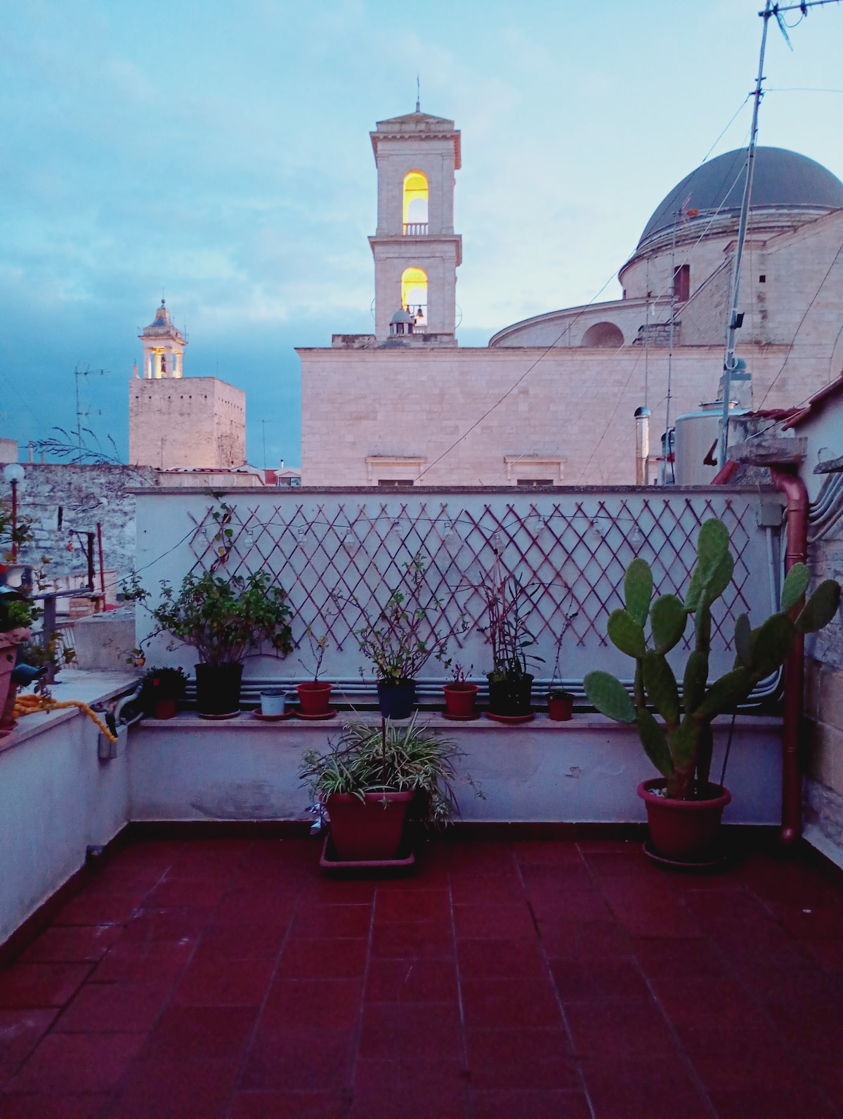 La casa si trova in una piazza vicina al centro storico, al terzo ed ultimo piano di un palazzo del '600, una volta teatro. Ci sono due terrazze: una a livello da 40mq con annessa lavanderia + un’altra di 120 mq con vista mare. In tutta la casa c'è un parquet in legno. Ci sono 2 condizionatori, 2 smart-tv, due bagni ed un bagno turco con cromoterapia. La casa, arredata con mobili antichi, è accogliente, molto luminosa e lontana da rumori. Vedi lo spot della Puglia: https://youtu.be/nSFyATE0pTc