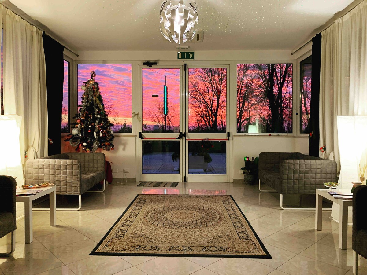 Inmersa en las colinas de San Carlo, en más de una hectárea de parque, Villa Naldi es un oasis de tranquilidad a solo unos pasos de Cesena, perfecto para aquellos que quieren un lugar exclusivo y refinado. Completamente restaurado, tanto externamente como en el mobiliario, nuestro enfoque quería mantener sin cambios su encanto histórico del siglo XVIII y estamos listos para dar la bienvenida a los huéspedes en un ambiente entre la historia y la naturaleza.